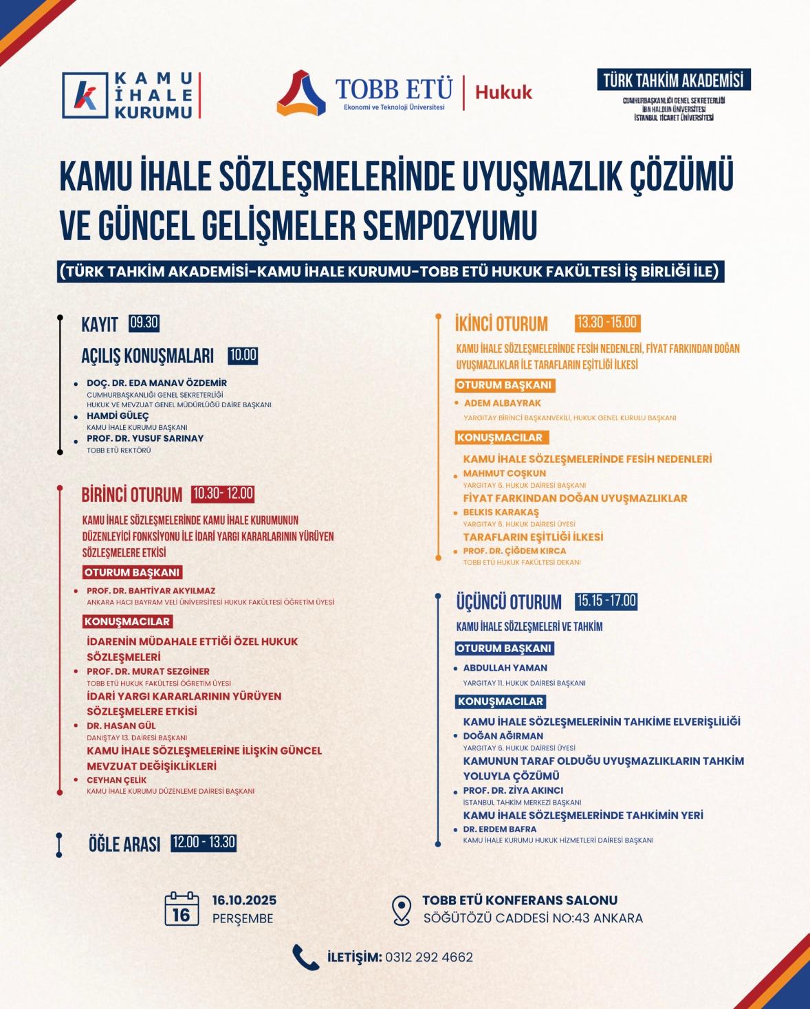 Türkiye Odalar ve Borsalar Birliği’nden odamıza ulaşan yazıda şu görüşlere yer verilmiştir: “Türk Tahkim Akademisi, Kamu İhale Kurumu ve TOBB Ekonomi ve Teknoloji Üniversitesi Hukuk Fakültesi’nin iş birliği ile “Kamu İhale Sözleşmelerinde Uyuşmazlık Çözümü ve Güncel Gelişmeler Sempozyumu” gerçekleştirilecektir.”