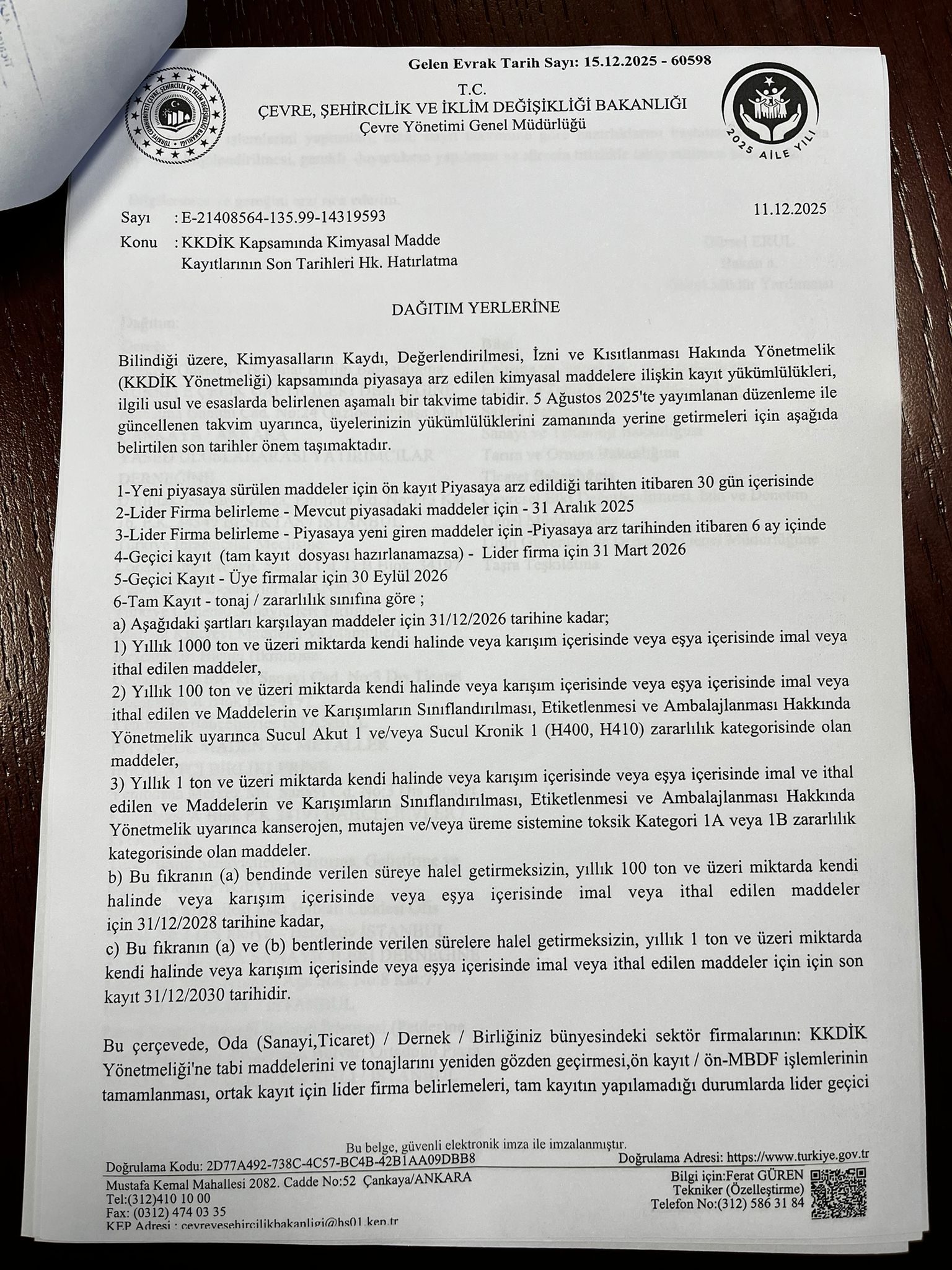 (Turkish) KKDİK YÖNETMELİĞİ KAPSAMINDA KİMYASAL MADDE KAYITLARININ SON TARİHLERİ HAKKINDA