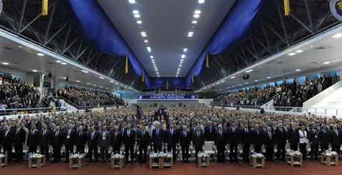 “Biz kendimize güveniyoruz” Özel sektör olarak son 10 yılda olduğu gibi, daha fazla çalışacaklarına, daha fazla üreteceklerine, daha fazla yatırım ve istihdam sağlayacaklarına söz verdiklerini belirten Hisarcıklıoğlu, “Geçtiğimiz 10 yılda nasıl başardıysak, emin olun ki önümüzdeki 10 yılda daha iyisini başarırız. Biz kendimize güveniyoruz! Siyasetçilerimizden de istikrar ve reform için daha fazla bir araya gelmelerini, siyasette diyalog ve uzlaşmayı sağlamalarını bekliyoruz. Bugün yeniden büyük hedefler etrafında kenetlenme zamanıdır. Hepimizin ortak paydası memleket sevdasıdır. Ortak amacımız ülkemizin kalkınması ve milletimizin bekasıdır! Mehmet Akif’in dediği gibi, girmeden tefrika bir millete, düşman giremez. Toplu vurdukça yürekler onu top sindiremez” dedi. Sosyal barışın anahtarı Herkesten, başkalarının görüş ve düşüncelerine de kulak vermelerini isteyen Hisarcıklıoğlu, “Bu ülkede sosyal barışın anahtarı, aklı ve vicdanı kiraya vermemekten geçiyor. Buradan toplumumuzun çoğunluğunu oluşturan önyargısız zihinlere ve vicdanlara sesleniyorum. Cemil Meriç’in vurguladığı gibi, idraklerimize giydirilmiş deli gömleklerini çıkartalım. Nefsimize değil, vicdanımıza kulak verelim. Komşumuzu öteki diye görmeyelim. Türkiye’nin geriye gitmesine, kavga, karmaşa ve belirsizlik ortamına sürüklenmesine izin vermeyelim. Reformların önünün kesilmesine müsaade etmeyelim.” dedi. Siyaset tabana yayılmalı Ekonomide olduğu gibi, demokraside de dünya standardına ulaşmak istediklerini kaydeden Hisarcıklıoğlu, bunu sağlamanın yolunun da, siyaseti tabana yaymaktan geçtiğini bildirdi. TOBB Başkanı, “Demokrasimizin kalitesini artırmak istiyorsak, siyasi partiler ve seçim kanunlarını, seçenle seçilen arasındaki bağı güçlendirecek şekilde değiştirmeliyiz” diye konuştu. Yeni anayasa TOBB Başkanı M. Rİfat Hisarcıklıoğlu şöyle konuştu: “ Sadece siyaseten değil, ekonomik ve toplumsal olarak da yeni ve çağdaş bir anayasaya ihtiyacımız var. Anayasanın yenilenme süreci en az içeriği kadar önemlidir. Yeni Meclisimiz, yeni anayasayı katılımcı bir yaklaşımla hazırlamalıdır. Türkiye kendisini oluşturan tüm unsurları ile kaynaşmalı, farklılıklar içinde bütünleşmeli ve yeni anayasasını konuşarak, tartışarak ve uzlaşarak yapmalıdır. Bu da yeni bir kavga alanı olmamalıdır.