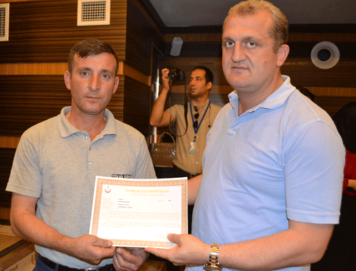 Sönmez’in konuşmasının ardından, havuz suyu kontrolü yapılan ve sorun çıkmayan otellere, Antalya Halk Sağlığı Müdürü Dr Murat Özdemir, Alanya Gıda Tarım ve Hayvancılık Müdürü Mehmet Rüzgar, Alanya İlçe Sağlık Müdürü Dr. Abdullah Yağdır ve  ALTSO Başkan Yardımcısı Ahmet Paşaoğlu tarafından belgeleri verdi.