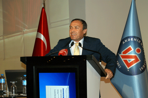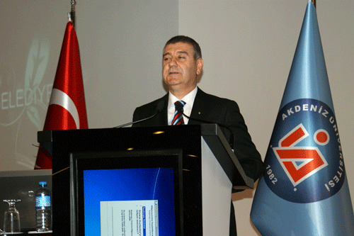 Akdeniz Üniversitesi Rektörü Prof.Dr. İsrafil Kurtcephe, Kongre Merkezi’nin 1,5 yıl gibi bir sürede Konaklı belediyesi, ALTSO ve Turizmciler tarafından 30 Trilyon TL’ye yapıldığını ve devletin kasasından tek kuruş çıkmadığına dikkat çekti. Kurtcephe ayrıca Akdeniz Üniversitesinin son geride kalan 4 yıllık sürede her bakımdan büyüdüğünü söyledi. Son 10 yıl içinde bilimi önemseyen ve rehber edinen bir Türkiye olduğunu belirten Kurtcephe, sözlerini şöyle sürdürdü: “Türkiye çalışmaya ve üretmeye devam ediyor. 2008 yılında 9 fakültesi bulunan Akdeniz Üniversitesi 18 fakülte ve 46 bin öğrenci, bin 66 öğretim üyesi ile yer almıştır. Risk alarak farkındalık adına imza atmak için ciddi girişimlerde bulunduk. 25 Eylül 2010 da çift kol nakli başlattıktan sonra, bu önemli işle birlikte kompozit doku nakline zemin hazırlamıştır. Bunların ötesinde rahim nakli gerçekleştirerek çok önemli bir başarıya imza attık. Rahim nakli yaptığımız hastamız şimdi bebek bekliyor. İnşallah doğacak bebeğimizi elimize alır ve sağlık anlamında Nobel’e aday gösterilir ve ödül alırız.” Antalya’nın sadece turizmle tanınan değil cazibe ve çeşitlilik anlamında hizmet veren bir yer olduğunu aktaran Rektör İsrafil Kurtcephe, şöyle konuştu: “AÜ, Avrupa, Balkan ve Kafkas ülkelerinden kurum ve insanın bizden sağlık hizmeti almak için başvurdukları bir kurumdur. 1 yılda VİP kaliteli odalara sahip hastanemizi hizmete soktuk. Tarımla ilgili araştırma ve çalışmaların yapıldığı bir yerdir. 4 yıl önce Fen ve Mühendislik Fakültesi’nde var olan öğretim üyesi sayısı dört kat artmıştır. Adı duyulan bir çok üniversite mensubu arkadaşlar bize katılmış ve teknoloji anlamında gelişmiş üniversiteler arasında ODTÜ ve İTÜ’nün arkasında 3’ncü olmuşuzdur. Kendi kategorisinde ise 1’nci sıradadır. Nükleer ekibimiz fizik ve nano teknoloji anlamında çalışarak ürettiği patent ve ürün anlamında, 2012 de ürettikleri ürün sayısı 11’i bulmuştur. Son zamanlarda bu günden üniversiteler arası kurumun gündemini oluşturacak. 2023’e vizyon çizen bir ülke olarak temel bilimler ve fen bilimlerinin geldiği bir gerçektir. Türk insanı eğitime yatırım yapıyor, bilimi önemsiyor.” Rektör Kurtcephe, daha sonra gecelerini gündüzlerine katıp dört yıl önce 14 kişilik fizik ekibinin başarıyla gerçekleştirdiği bir deneyi sunmak için Türk milletinin gururu olan bu deneyin sahibi Prof. Dr. İsmail Hostosun’u tebrik ettiğini söyledi. TÜRKİYE’DE BİR İLK