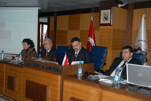 Yönetim Kurulu Başkanı Kerim Aydoğan toplantının açılış konuşmasına 2011 yılından beklentilerini ve temennilerini dile getirerek başladı. Daha sonra aylık yönetim kurulu faaliyetlerinden söz eden Aydoğan, ALTSO’nun da organizasyonunda yer aldığı Galatasaray – Hannover’96 takımlarının maçını ve bu maçın ilçemiz tanıtımına yaptığı önemli katkıları değerlendirdi. 58 Ülkede yayınlanan karşılaşmanın ilçemizin spor turizminde daha fazla söz sahibi olması gerektiğini de gösteren Aydoğan, Oba’daki Alanya Şehir Stad inşaatının bitmesindeki emeği nedeniyle AKPM Başkanı ve Antalya Milletvekili Mevlüt Çavuşoğlu’na teşekkür etti. Organizasyona emeği geçen başta Kaymakamlık, Alanya Belediyesi, Oba Belediyesi ve Alanya Gazeteciler Cemiyeti’ne de teşekkür eden Aydoğan, ALTSO Yönetim Kurulu Üyesi Tamer Yalçın’ın da katkılarının takdire değer olduğunu ifade etti. Halkbankası ile Alanya Ticaret Odası işbirliğinde oda üyelerine yönelik ALTSO Logolu “Halkcard” çalışmasına da başlandığına değinen Aydoğan, bu kartlardan elde edilen bir kısım gelirle ilçemiz yükseköğrenime katkı yapılacağını hatırlattı.