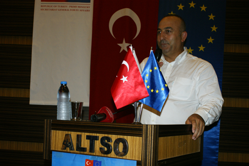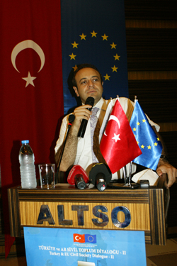 AB’nin kurallarını ve ilkelerini uygulamak istediklerini vurgulayan Bakan Bağış, “Bu ülkede AB süreci olsa da olmasa da, donsa da donmasa da, biz AB’nin ülkelerine kızabiliriz ama ilkelerini uyguluyoruz. Zaten AB’nin bizim için önemli olan kısmı, Atatürk’ün hedef gösterdiği çağdaş medeniyetler seviyesinin üzerine çıkabilmek için atılması gereken adımlar orada çok net bir şekilde vurgulanmıştır. AB bizin için bir araçtır. O standartları yakalamak için peşinden koşulacak bir hedeftir. Eğer AB üyesi ülkeler makul hakkaniyet içerisinde adım atarlarsa varacağımız son nokta tam üyeliktir. Biz başka bir şeyde kabul etmeyiz. Onlar istese de istemese de biz o standartları yakalayacağız. Anadolu da sevdiğim güzel bir söz var, papaza kızıp oruç bozacak halimiz yok. Bizim demokratikleşme, şeffaflaşma konusunda attığımız adımlar, artık geri dönülmeyecek adımlardır. Artık biz kimsenin darbe korkusuyla çocuk büyütmesini istemiyoruz. Kimsenin işkence korkusu çekmesini istemiyoruz” diye konuştu. 21 TEMMUZ’A VURGU