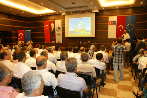 Avrupa Birliği Bakanı Egemen Bağış ve Alanyalı Avrupa Konseyi Parlamenter Meclisi (AKPM) Başkanı Mevlüt Çavuşoğlu, Alanya’da odamızın da ortağı olduğu, Alanya Muz Üreticileri Birliği’nin Türkiye ve AB Sivil Toplum Diyaloğu-II Tarım ve Balıkçılık Hibe Programı Kapsamında Yürütülen Avrupa-Türkiye Muz Bağlantısı Projesi Tanıtım Toplantısına katıldı. Program Odamız yayını www.alanyaweb.tv kanalından da canlı olarak yayınlandı. Toplantı öncesi Oda Başkanımız Kerim Aydoğan Yönetim Kurulu üyelerimiz ile bir süre sohbet eden AB Bakanı Bağış, Alanya da karşılaştığı sıcak ilgiden kaldığı memnuniyeti dile getirdi. Oda Başkanımız Kerim Aydoğan ve Yönetim Kurulu üyeleri ile bir süre sohbet eden AB Bakanı Egemen Bağış’a, Odamızı ziyaretleri anısına bir şükran plaketi takdim edildi. AB Bakanı Sayın Egemen Bağış tarafından Oda Başkanımız Kerim Aydoğan’a da bir plaket takdim edildi. Daha sonra başlayan Avrupa-Türkiye Muz Bağlantısı Projesi Tanıtım Toplantısının açılış konuşmasını yapan Alanya Muz Üreticileri Birliği Başkanı Hüseyin Güney, katılımlarından dolayı Bakan Bağış ve Çavuşoğlu’na teşekkür etti. Proje Koordinatörü Mehmet Kural ise, proje ile teknik bilgi veren bir sunum yaptı. Daha sonra konuşan Alanya Belediye Başkanı Hasan Sipahioğlu ile Alanya Kaymakamı Hulusi Doğan’nın ardından söz alan AKPM Başkanı Mevlüt Çavuşoğlu, Bakan Bağış ile 25 yıllık dost olduklarını belirterek, “Amerika’da beraber okuduk. Çok zor bir görevi başarıyla yürütüyor. Siyasette en önemli şey dostluktur. Siyasette gerçek dost bulmak çok zordur” diye konuştu. Fas Ulusal Konseyi’ni AKPM’ye üye yaptıklarını hatırlatan Çavuşoğlu, “Ekim ayında Filistin Ulusal Konseyi’ni de üye yapacağız” dedi. Daha sonra söz alan AB Bakanı ve Başmüzakereci Egemen Bağış Konuşmasına ‘Alanya’nın sıcağı ile eş sıcaklıkta karşılandık’ diye başladı. “Kıbrıs’ta milli gururu sayın başbakanımızın sayesinde bir kez daha yaşadık. Barış Operasyonu’nun 37. yıldönümünde yavru vatanımızın barış ve özgürlük bayramını kutlarken çok farklı duygular yaşadık. Orada sayın başbakanımız çok net bir mesaj verdi. Sayın başbakanımızın dünya kamuoyuna ve özellikle artık Avrupa’nın şımarık çocuğu konumuna geçmiş olan Kıbrıslı Rumlara verdiği net mesajlar, Kıbrıs konusunda yeni bir dönemin başlangıcını müjdelemiştir. Türkiye her zaman olduğu gibi diklenmeden dik durma konusunda kararlılığını ortaya koymuştur. Biz Kıbrıs konusunda verilen sözlerin tutulmasını bekliyoruz. Kıbrıs konusunda ‘çözümsüzlük çözümdür’ diyenlere katılmadığımızı 2002 yılından bu yana vurguladık” dedi. Rum kesiminin AB nin üyesi olduktan sonra yaptıkları ile sıkıntılı bir dönemin başladığını altını çizen Bağış, “Seçildikten sonra ki 4 yıl arasında 26 Nisan 2004 senesinde AB ülkeleri oy birilği ile Kuzey Kıbrıs’a uyguladıkları izolasyonları kaldırdıklarını resmi bir belge ile dünyaya ilan ettiler, ama . Rumlar bunu kararı uygulatmadı. 600 bin nüfuslu Kıbrıslı Rum’un Rum kesiminin 490 milyon Avrupalının çıkarlarını, geleceğini ipotek altına almasına diğer 26 Ab ülkesi seyirci kalıyorsa, bunlarında kendi halklarına vermeleri gereken bir hesap vardır.” Dedi, ARTIK BALIK TUTMAYI ÖĞRENDİK