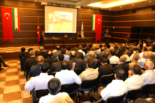 İran’ın en büyük eyaletlerinden biri olan ve 2 milyon nüfusa sahip Hamedan’dan  Odamızın daveti üzerine Alanya’ya gelen 50 kişilik heyette; Hamedan Valisi Dr. Behrooz Moradi,  Vali Yardımcıları Mohammed Naser Nikbakht, Hamid Asgari, Aliheider Nouri, Kaymakam, Eyalet kurum Başkanları, Belediye Başkanı, Ticaret ve Sanayi Odası başkanı, Başkan Yardımcıları, yine ticaret odasının yönetim kurulu üyeleri ve bir gurup iş adamı bulunuyor. Toplantıda, ALTSO Başkanı Kerim Aydoğan tarafından, 50 kişiden oluşan İran Heyeti’ne ilçe ekonomisi hakkında brifing verildi. İran heyetine Alanya’daki yatırım olanakları hakkında bilgi veren ALTSO Başkanı Aydoğan, Türkiye ile İran arasındaki ticari ilişkilerde, son yıllarda canlılık görüldüğünü kaydetti. İki ülke arasındaki ticaret hacminin 5 milyar doların üzerine çıktığına işaret eden Aydoğan, ”İran ile ekonomik ilişkilerimizdeki gelişme sadece ithalat ve ihracatta değil son yıllarda turizm konusunda da yaşanmıştır. Maalesef ilçemiz bu pazarı fark edemedi. ALTSO olarak İran heyeti ile yaptığımız görüşmeler sonrasında bölgeler arasındaki yatırımların gelişeceğine inanıyorum” dedi.