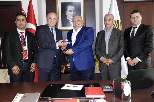 Onur Air Hava Yolları Acenteler Müdürü Mustafa Bacı ve Tarifeli Seferler Müdürü Orhan Sivrikaya, 18 Nisan 2014 Cuma günü saat 15:30’da Alanya Ticaret ve Sanayi Odası Başkanı Mehmet Şahin’i ziyaret etti.