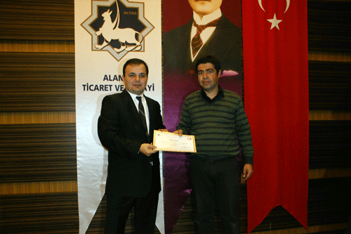 Dalabasmaz, “2007 Yılında yayınlanan Sigortacılık Kanunu ile sektörde yeni bir dönem başlamış oldu. Alanya Ticaret Ve Sanayi Odası olarak bu alanda yapılan değişiklikleri hızla takip ederek, sizlerle paylaşmak ve yaşanan bu değişim sürecine bölgemizin hızla intibak etmesi için yoğun çabalar gösterdik. Temel amacı sigorta acentelerine mesleki yeterlilik getirilmesi olan sigorta acenteleri yönetmeliği uyarınca, bölgemizdeki sigorta acentelerinin uygunluk belgesi müracaatları odamız tarafından alınarak hızla Türkiye Odalar ve Borlara Birliği aracılığı ile hazine müsteşarlığına intikal ettirilmiştir. Odamız tarafından yürütülen çalışmalar kapsamında bu güne kadar toplam 86 sigorta acentesi uygunluk başvurusu alınmış, bu başvuruların 76 adedinin işlemleri tamamlanarak artık uygunluk belgesi olarak bilinen levhaların teslimi aşamasına gelinmiştir. Geriye kalan acentelerinde bazı küçük eksiklileri tamamlanma aşamasındadır. Onların da kısa sürede bu eksikliklerini girmeleri halinde belgeleri basılarak teslim edilecektir” dedi.