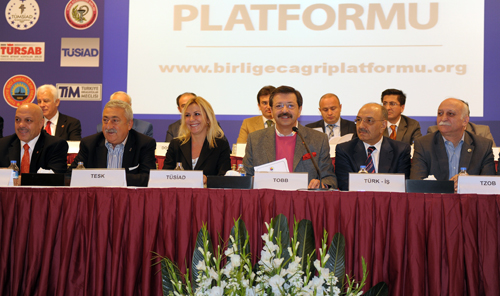 Birliğe Çağrı Platformu’nun, TOBB Başkanı Hisarcıklıoğlu tarafından dile getirilen ortak basın açıklaması şöyle: “Türkiye İşçi Sendikaları Konfederasyonu (TÜRK-İŞ), Türkiye İşveren Sendikaları Konfederasyonu (TİSK), Türkiye Esnaf ve Sanatkarları Konfederasyonu (TESK), Türkiye Ziraat Odaları Birliği (TZOB), HAK- İşçi Sendikaları Konfederasyonu (HAK-İŞ), Memur Sendikaları Konfederasyonu (MEMUR-SEN), Türkiye Kamu Çalışanları Sendikaları Konfederasyonu (Türkiye KAMU-SEN), Türkiye Barolar Birliği (TBB), Türkiye Noterler Birliği (TNB), Türkiye Serbest Muhasebeci Mali Müşavirler ve Yeminli Mali Müşavirler Odaları Birliği (TÜRMOB), Türk Veteriner Hekimleri Birliği (TVHB), Türkiye Seyahat Acenteleri Birliği (TÜRSAB), Türk Eczacıları Birliği (TEB), Türk Diş Hekimleri Birliği (TDB), Türk Sanayicileri ve İşadamları Derneği (TÜSİAD), Müstakil Sanayici ve İşadamları Derneği (MÜSİAD), Türkiye İşadamları ve Sanayiciler Konfederasyonu (TUSKON), Tüm Sanayici ve İşadamları Derneği (TÜMSİAD), Türkiye İhracatçılar Meclisi (TİM), Anadolu Aslanları İşadamları Derneği (ASKON), Türk Girişim ve İş Dünyası Konfederasyonu (TÜRKONFED), Doğu ve Güneydoğu Sanayici ve İşadamları Dernekleri Federasyonu (DOGÜNSİFED), Türkiye İşçi Emeklileri Derneği (TİED) ve Türkiye Odalar ve Borsalar Birliği (TOBB) olarak buradayız. Türkiye’nin her bölgesinde örgütlü, toplumun bütün kesimlerini temsil eden kuruluşlar olarak bir aradayız. Arkadaşlar, biliyorsunuz hassas bir süreçten geçiyoruz. İçimizi yaralayan, ciğerimizi yakan olaylarla karşı karşıyayız.