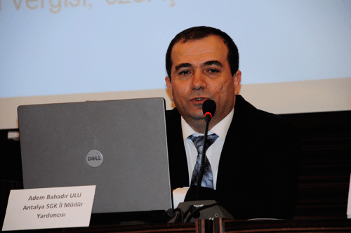 Çatal’dan sonra söz alan Antalya SGK İl Müdür Yardımcısı Adem Bahadır Ulu, kamuoyunda Torba Yasa olarak bilinen 6552 sayılı İş Kanunu ve Bazı Kanun ve Kanun Hükmünde Kararnamelerde Değişiklik Yapılması ile Bazı Alacakların Yeniden Yapılandırılmasına Dair Kanun hakkında katılımcılara ayrıntılı bilgiler verdi.