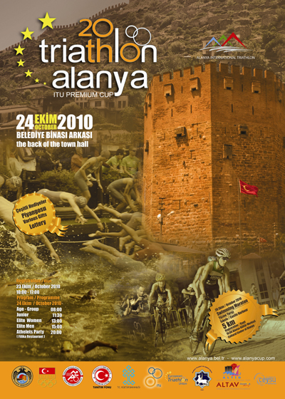 ALANYA ÖDÜLLÜ TRİATLON YARIŞLARI 24 EKİM’DE Alanya Belediyesi organizasyonunda Odamızın da desteği ile 24 Ekim 2010 günü 20’incisi düzenlenecek Alanya Ödüllü Triatlon Kupası için yapılan hazırlıklar devam ediyor. Galip Dere Plajında gerçekleşecek yarışlara 25 ülkeden 350’yi aşkın sporcu katılacak