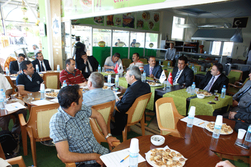 İlk olarak Avsallar-İncekum-Türkler Beldelerindeki üyeler için Avsallar’da bulunan Recep Karaca Çok Programlı Lise Konferans Salonu’nda ortak bir toplantı düzenlendi. Toplantıya Avsallar Belediye Başkanı H.Enver Görgülü, Türkler Belediye Başkanı Hayri Çavuşoğlu ve İncekum Belediye Başkanı Fahri Baysal da katıldı. Toplantıda konuşan Oda Başkanımız Kerim Aydoğan, öncelikle kış turizmini canlandırmak ve ekonomik hareketliliği 12 aya yaymak amacıyla yürüttükleri çalışmalardan söz etti. Aydoğan bu konuda Akdağ kayak Merkezi, Spor Turizmi, Yükseköğrenimin ilçemizde yaygınlaşması ve Kongre Turizmi konularındaki yönetim faaliyetlerini dile getirdi. “Akdağ Kayak Merkezi’nin açılmasıyla Alanya ekonomisi kış döneminde de hareketlenecek. Başta Golf turizmi olmak üzere futbol ve daha birçok spor dalı için tesislere ihtiyaç var. Bunun için siyasilerimizin de desteği ile çalışmalar yapıyoruz” diye Aydoğan; “Gol sahaları için yerler belirlendi. 25 binlik haritanın üzerindeki çalışmalar devam ediyor. Golf, sağlık, spor ve kayak turizmi için bölgeye gelen turistten kişi başı 5 bin dolara varan girdi sağlanırken, bugünkü kıyı turizminden kişi başı ortalama 450 dolar girdi sağlanabiliyor. Bu dallarda tesislerin hizmete girmesiyle, yazın kazanan, kışın tüketen bir toplum olmaktan kurtulacağız. Ekonomimiz daha da güçlenecek. Alanya’nın ekonomik girdisinin yüzde 35’i tarımdan sağlanmakta. Türkler’de bulunan bölgeye modern bir hal yapılması konusunda çalışmalar var. Bugün itibariyle ihracatçı, hallerimiz dağınık olduğundan Antalya’yı tercih ediyor. Bu da ekonomik girdilerimizin düşmesine neden oluyor” dedi.