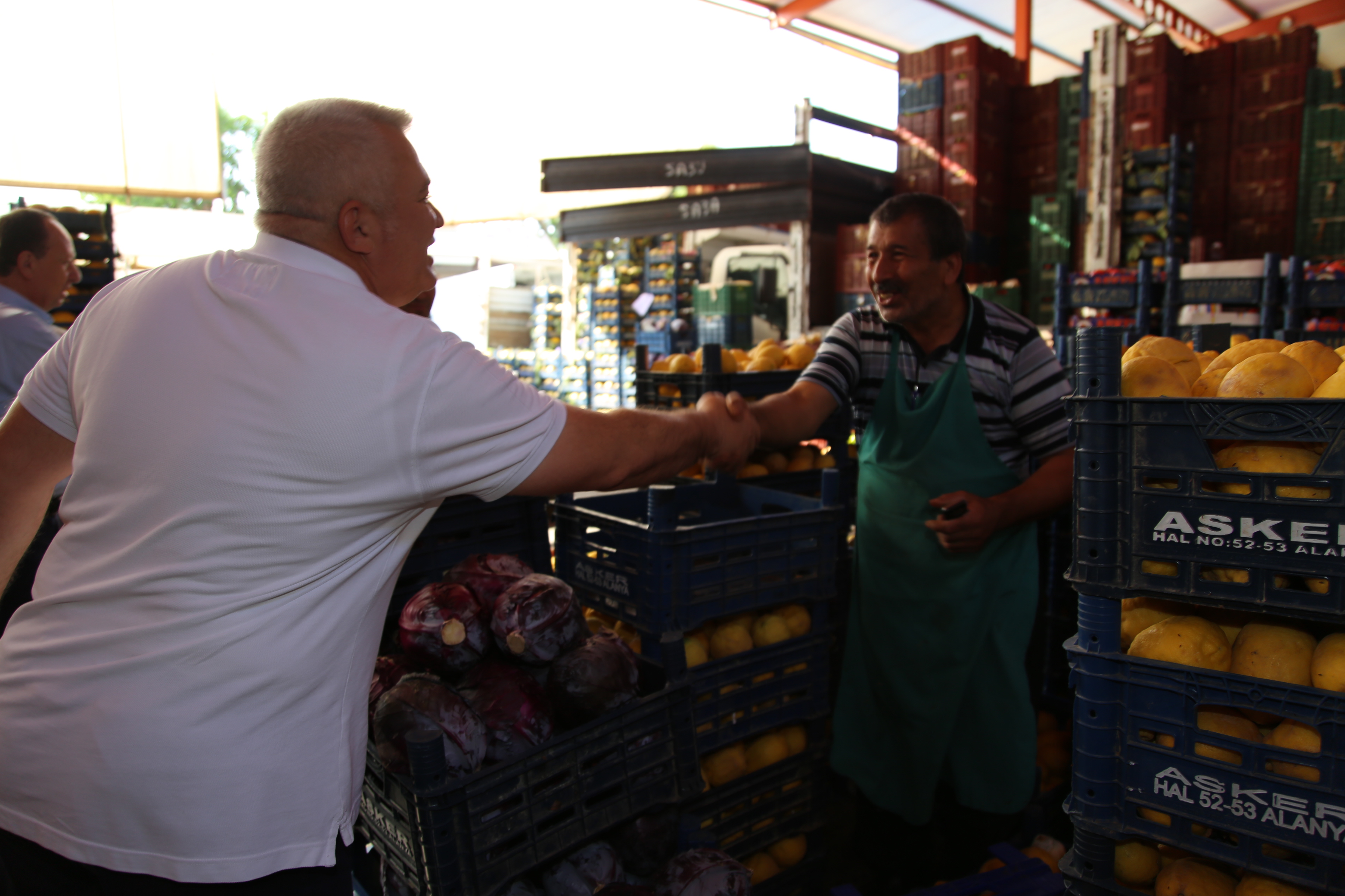 Hal esnafının büyük ilgisiyle karşılaşan Başkan Şahin, zaman zaman kendisine iletilen talepleri de büyük bir dikkatle dinleyerek notlar aldı. Üye odaklı bir çalışma prensibi belirlediklerini hatırlatan Şahin, hem çalışma döneminde hem de seçim sonrası aynı çalışma prensibi ile yola devam edeceklerini, belirterek “Üyelerimizi seçimden seçime hatırlamadık. Seçimin ardından şimdi de hal esnafımıza teşekkür ziyareti gerçekleştirdik. Önümüzdeki süreçte de sık sık bir araya geleceğiz. Geçtiğimiz dönem hal esnafımızla çok uyumlu çalıştık. Bu da başarıyı beraberinde getirdi. Alanya Sebze ve Meyve Toptancı Hali’nin projesini hal esnafımızın taleplerini dikkate alarak çizdirdik. Şimdi inşaat çalışmalarını da yakinen takip ediyoruz” dedi.