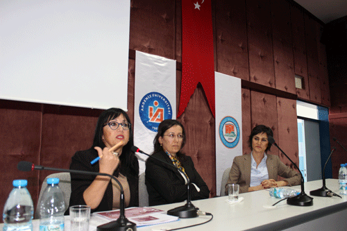 Alanya’da 5 aydır bulunduğunu söyleyen Özdemir, kadın üzerine projeler üretmeyi sevdiğini ve bu amaçla da kısa sürede projelere başladıklarını söyledi.  Çalışmaların sosyal medya üzerinden takip edilebildiğini dile getiren Özdemir, ”Sosyal medya takipçilerine de fikirlerini sunmaya ve bunu harekete geçirmek isterse biz buna hazırız. Mesela yeni projede tiyatro oyunu için çalışmalarımız var. gelin yazdığınız hikayeyi senaryoya bize gönderin değerlendirelim” dedi. Kadın olmadan evvel insan olmak gerektiğini dile getiren Özdemir, ”İnsan sevilmek sevmek ister, takdir etmek edilmek ister. Bunlar bizlerin doğal dürtülerimiz. Ben kendimi saymadığımda, sevmediğimde, anlayış göstermediğimde bir eksiklik hissederim ve bunu da hep karşıdan beklemeye başlarım. Ama beklemek bu sorunu çözer mi bence muhtaçlığı arttırır” dedi. Annelerde ciddi bir yapısal sorun gördüğünü dile getiren Özdemir, anneler için de projeler ürettiklerini söyledi. Özdemir, ” Çocuk doğuyor, büyüyor ve hep öğretmenlere atıf yapılıyor ama bir gerçek var asıl bunu bize bu şekli kültürü veren içinde büyüdüğümüz ailemiz değil mi?. Aileye yön veren da annedir. Elin üstünde kimin eli var önce kına gecesi projesiyle başladı.  Şimdi de kırık cam adlı eğitim projesine başladık. Burada anneleri hedef aldık” diye konuştu. Alanya Kadın Girişimciler Kurulu Başkanı Burcu Baba ise kadınlar ülke ekonomisindeki gücüne değindiği konuşmasında ”Türkiye’de 1.3 milyon girişimci var. Burada kadınların payı ise sadece yüzde 6.5. Yani 80 bin girişimci kadın var. Ve bu da azınlıkta. Ama iyi tarafı da şu; kadın girişimciler olarak başlatılan çalışmalar neticesinde bu oran yüzde 6’dan yüzde 6.5’e yükseldi” dedi. Baba, konuşmasında katılımcılara üniversite eğitimi sırasında yapacağı işe karar vermesi gerektiğini belirterek eğitimin ardından bir arayışa girmenin zaman kaybı olduğunu sözlerine ekledi. TOBB Antalya İl Kadın Girişimciler Kurulu Başkanı Işık Yargın da kadın erkek ayrımın doğru olmadığını ifade ederek, kadının her şeyden önce iyi bir eğitmen ve öğretmen olduğunu söyledi. Yargın, bir işi yapıyor olmanın ve model olmanın önemine değinerek, ”Bazen hayallerimiz vardır. Nasıl yaparız diye düşünürüz ve sonra bir model ortaya çıkar ve size yol gösterir. Siziz harekete geçirir. Önemli olan bunu görmek ve istemek. Bugün size tecrübelerimizi anlatırken size de aynı zamanda örnek olmak ve yol göstermek istiyoruz” dedi. Dünya Kadınlar Günü’nün esas itibariyle bir kadınlar mücadelesi sonrası ortaya çıktığını anlatan Yargın, bunun ortaya çıkmasında ise yapılan bir mücadelenin olduğunu söyledi. Kadın girişimciliğinden söz etmek istediğini vurgulayan Yargın, bir toplumun refahının ekonomisiyle ölçüldüğünü dile getirdi. ekonomiyle ölçülmeyen hiç bir toplumun refah düzeyinden bahsedilmeyeceğini dile getiren Yargın,  ” Kadınları ekonominin dışında düşünmemiz artık mümkün değil. Ekonomik değer yaratmak için bizlerin bazı değerler yaratması gerekiyor. İş fikirlerimizi hayata geçirmeliyiz. Devir değişti. İnternet devrimi bile tamamlandı. Öyle bir devrimin eşiğindeyiz ki artık bireylerin devrimi. İnsan olma değerleri üzerinde hedef koyacağız ve kendimizi ifade edeceğiz” dedi. Panelistler, konuşmalarının ardından öğrencilerin  sorularına cevap verdi.