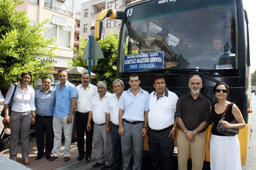 Törene Oda Başkanımız Kerim Aydoğan ve Meclis Başkanı Mustafa Tuna, Odamız Yönetim Kurulu üyeleri, ALTİD Başkanı Gülçin Güner, TURSAB Alanya BYK Başkanı Ayhan Kaya, Cikcilli Belediye Başkanı Kerim Ertekin, Demirtaş Belediye Başkanı Mustafa Aras, Oba Belediye Başkan yardımcısı Mükerrem Babaoğlu ile belde belediye yetkilileri katıldı. Bilindiği üzere söz konusu hizmet Alanya Ticaret ve Sanayi Odası, Alanya Belediyesi, Cikcilli, Çıplaklı, Oba, Tosmur, Kestel, Mahmutlar Demirtaş ve Kargıcak belediyeleri ile ALTAV, ALTID, TURSAB Alanya BYK işbirliğinde gerçekleştiriliyor. Gazipaşa Havalimanı’na düzenlenen ücretsiz servislerin kalkış ve varış noktası ALTSO önü olarak belirlendi. Bununla birlikte Tosmur Grand Kaptan Otel karşısı, Mahmutlar Belediye Karşısında D-400 üzeri, Kargıcak Titan Otel Karşısı ve Demirtaş Jandarma Karakolları karşısında da servis durakları konulmasına karar verildi.